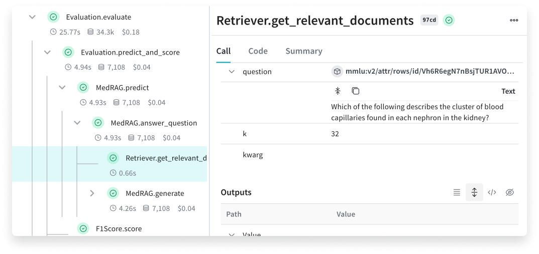 Weave is a lightweight toolkit for tracking and evaluating LLM applications. Use W&B Weave to visualize and inspect the execution flow of your LLMs, analyze the inputs and outputs of your LLMs, view the intermediate results and securely store and manage your prompts and LLM chain configurations.